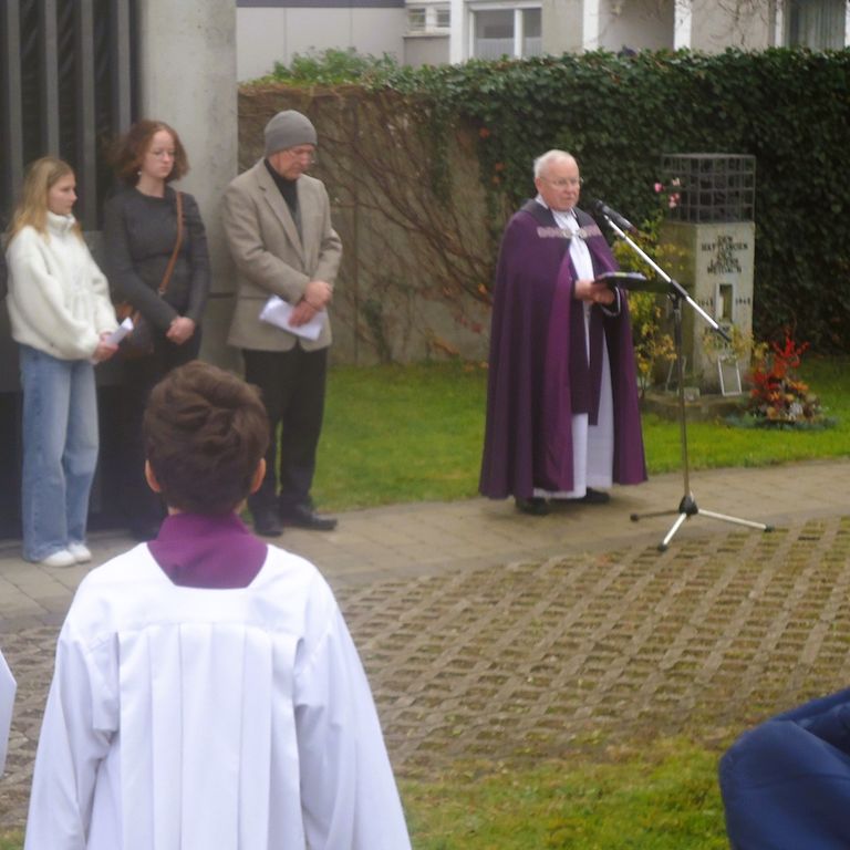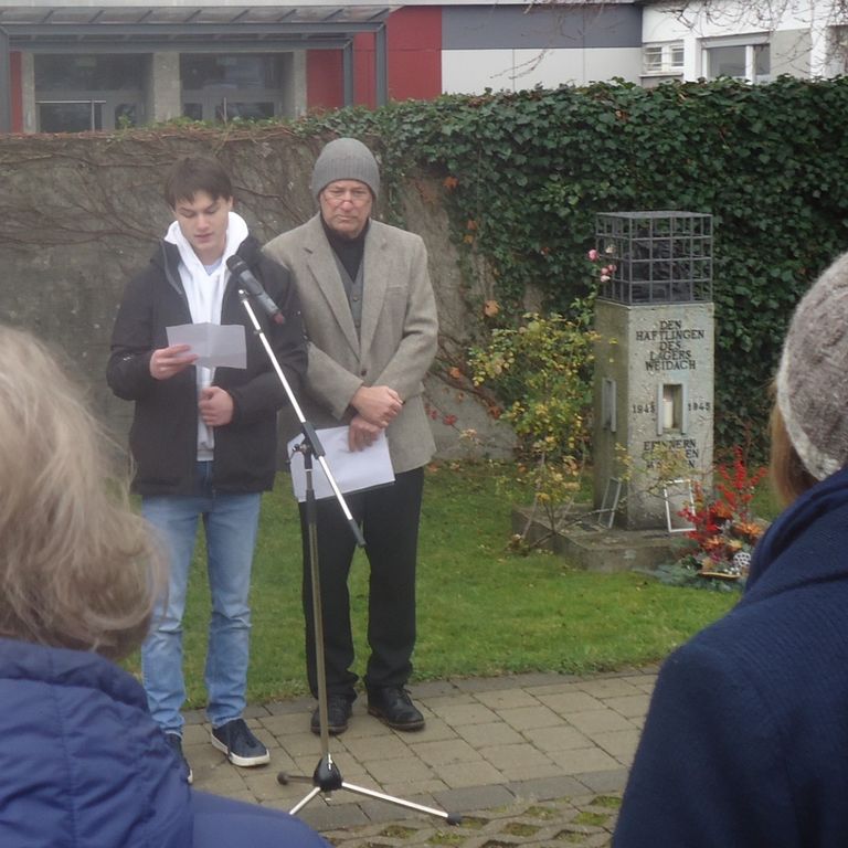 Auch in diesem Jahr beteiligte sich die Initiative STOLPERSTEINE für Kempten und Umgebung an der Gedenkfeier anlässlich der Pogromnacht 1938, zu der das Allgäu-Gymnasium gemeinsam mit der Katholischen Kirche eingeladen hatte. Sie fand am Sonntag den 09.11.2025 vor der Pfarrkirche in Weidach- Oberkottern statt. Die Feier wurde auch wesentlich von den Schülerinnen und Schülern des Allgäu-Gymnasiums gestaltet und neben dem Gedenkstein für das Konzentrationslager abgehalten, der 1995 auf Initiative von Lehrerinnen und Lehrern sowie Schülerinnen und Schüler errichtet wurde.