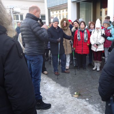 Nach der Veranstaltung hatten Interessierte die Möglichkeit, ausgesuchte Stolpersteine zu besuchen und sich von Mitgliedern der Initiative STOLPERSTEINE die Hintergründe und Lebensgeschichten berichten zu lassen.